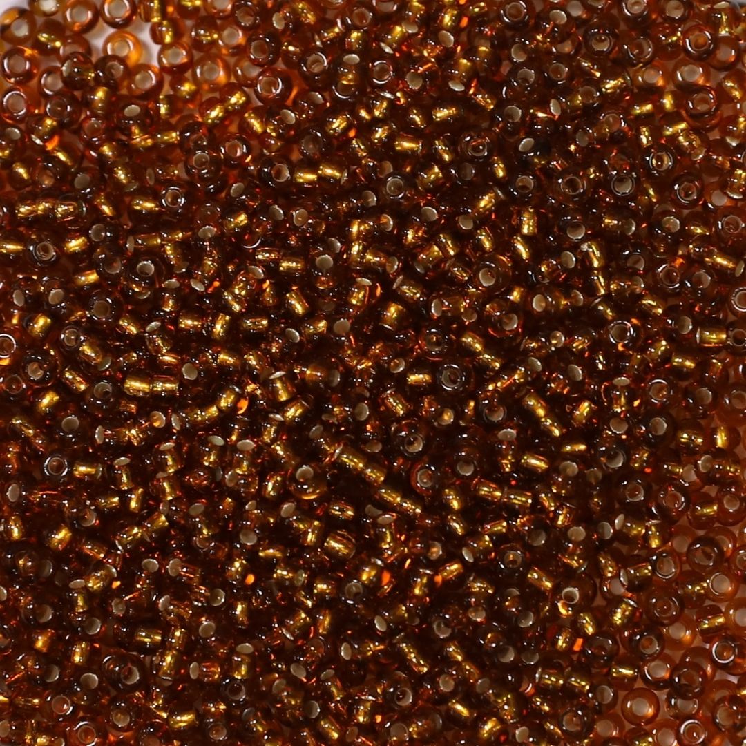 Miçanga Jablonex Marrom Transparente com miolo Dourado 0/9