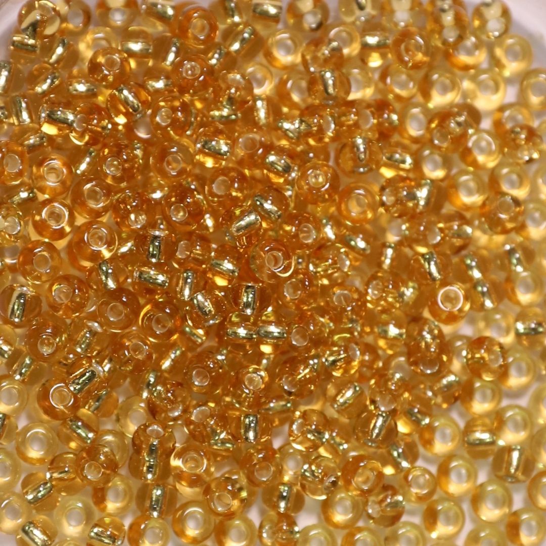 Miçanga Jablonex Dourado Transparente com miolo prata 6/0
